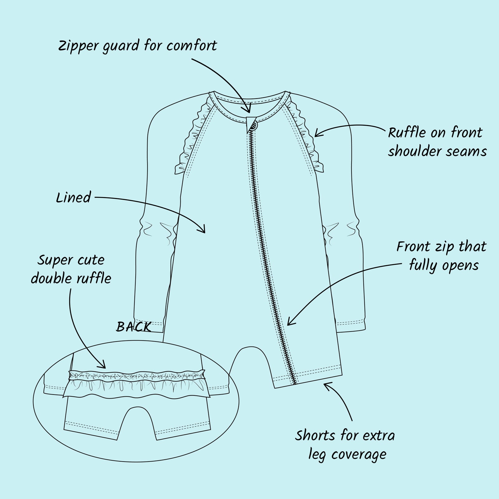 Check out all the functional features that make our Chloe one piece a wardrobe winner for your mini's!