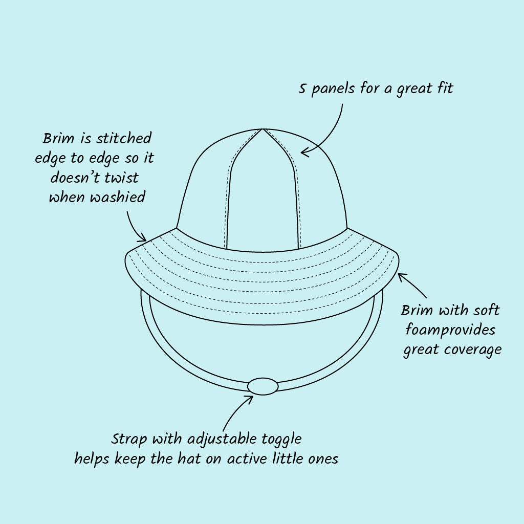 👒 Full coverage brim → shades little faces, ears & necks from the sun