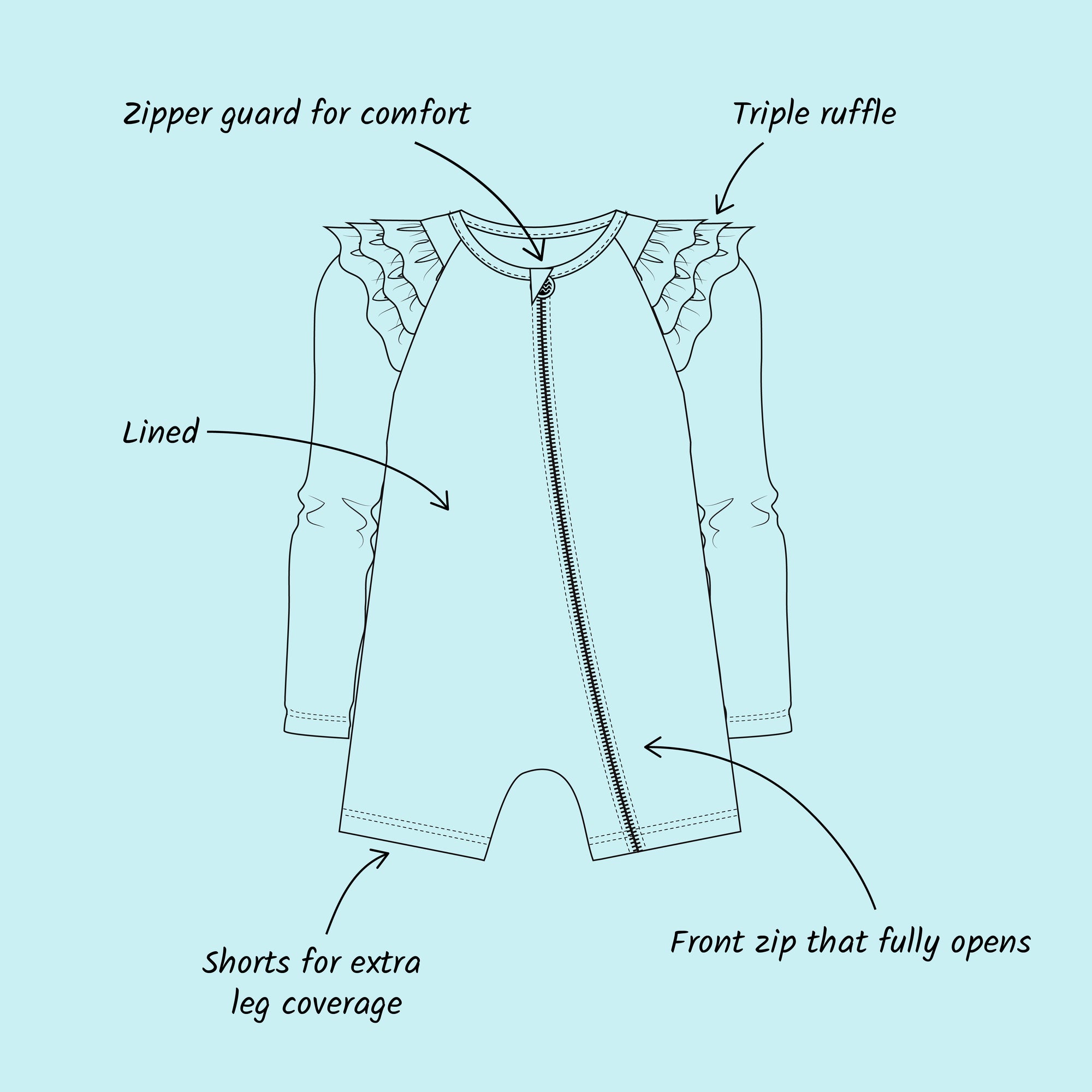 Check out all the functional features that make our Zoe one piece a wardrobe winner for your mini's!